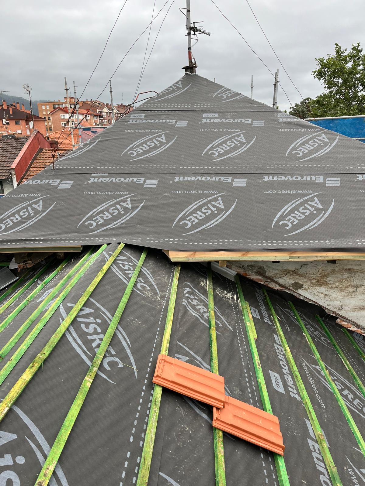 Renovación completa de tejado con colocación de tejas y ajuste de la estructura para garantizar protección y larga duración.